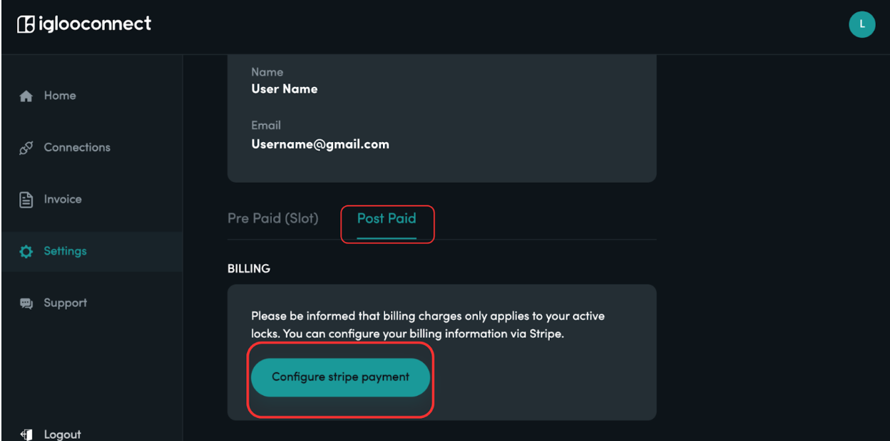 Go to Settings and tap on Configure stripe payment. API subscription fee of $2/active device/month.