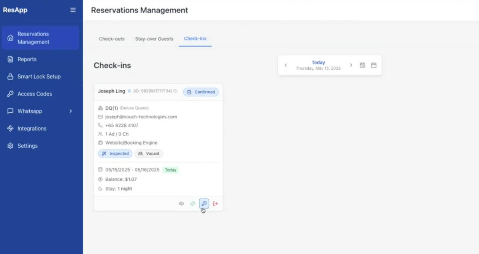 In Reservation Management, Click on “Key Icon”